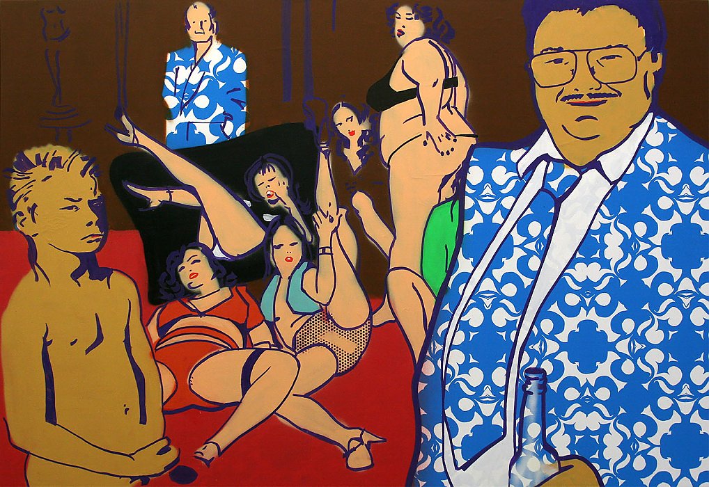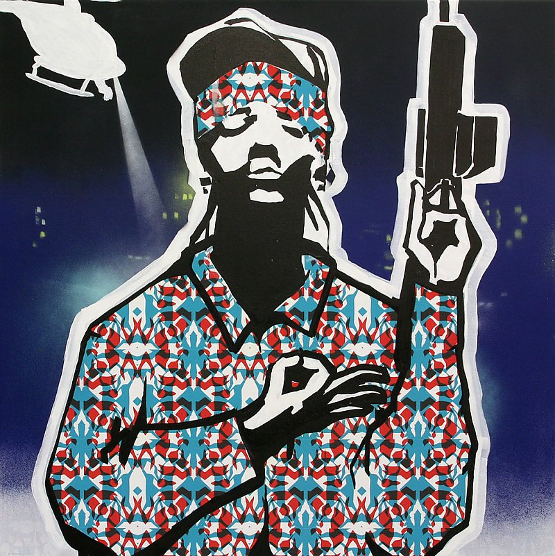 Acrylfarbe, Marker und Spraydose auf digitalen Pigmentprints, signiert